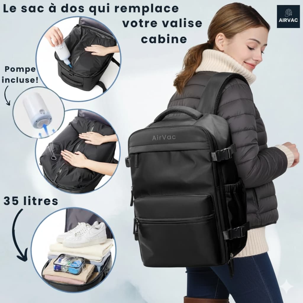 Airvac élimine l'angoisse des comptoirs d'enregistrement et du surpoids. Vous savez exactement ce que vous emportez et pourquoi c'est permis.